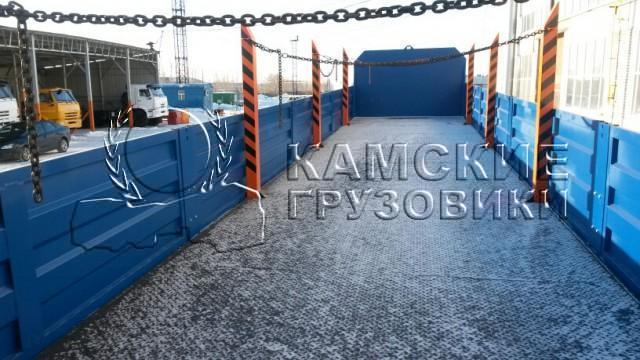| Особенности комплектации автомобиля | Бортовая платформа с открывающимися боковыми и задними металлическими бортами, настил пола стальной, встроенные коники из трубы 100х100х5мм, коники выдвигаются на 300 мм в каждую сторону. Рама сварная с двумя лонжеронами из двутавров переменного сечения сталь 09Г2С. Объем бортовой платформы без коников 22 м3, с кониками 46 м3. |