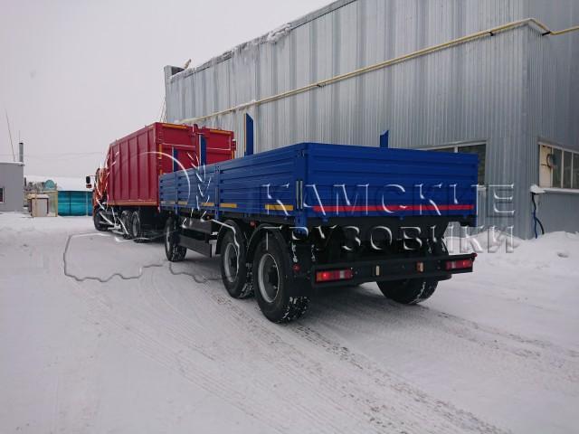 | Особенности комплектации автомобиля | Прицеп Бортовой сортиментовоз трёхосный двухскатный перевозка сортамента 6м, 4+4м, 8м. |